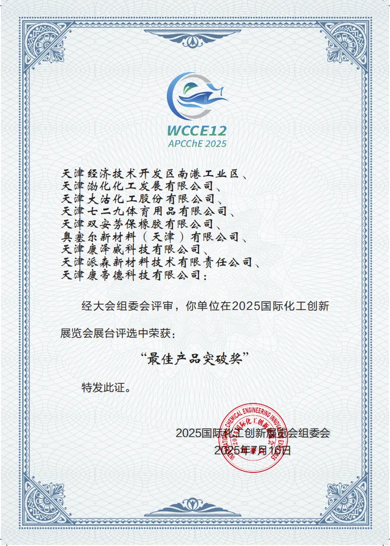 天津康帝德科技有限公司荣获2025国际化工创新展览会“**产品突破奖”。153